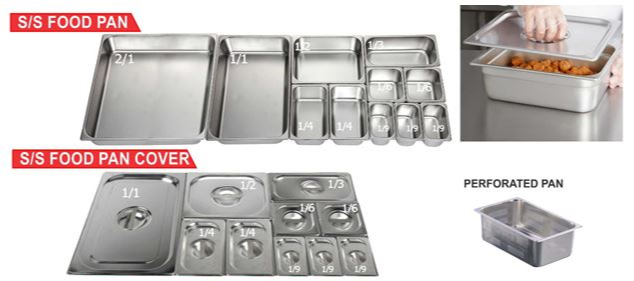 Food pan biasanya datang dalam berbagai macam ukuran yg anda bs lihat seperti di gambar untuk kebutuhan anda.
